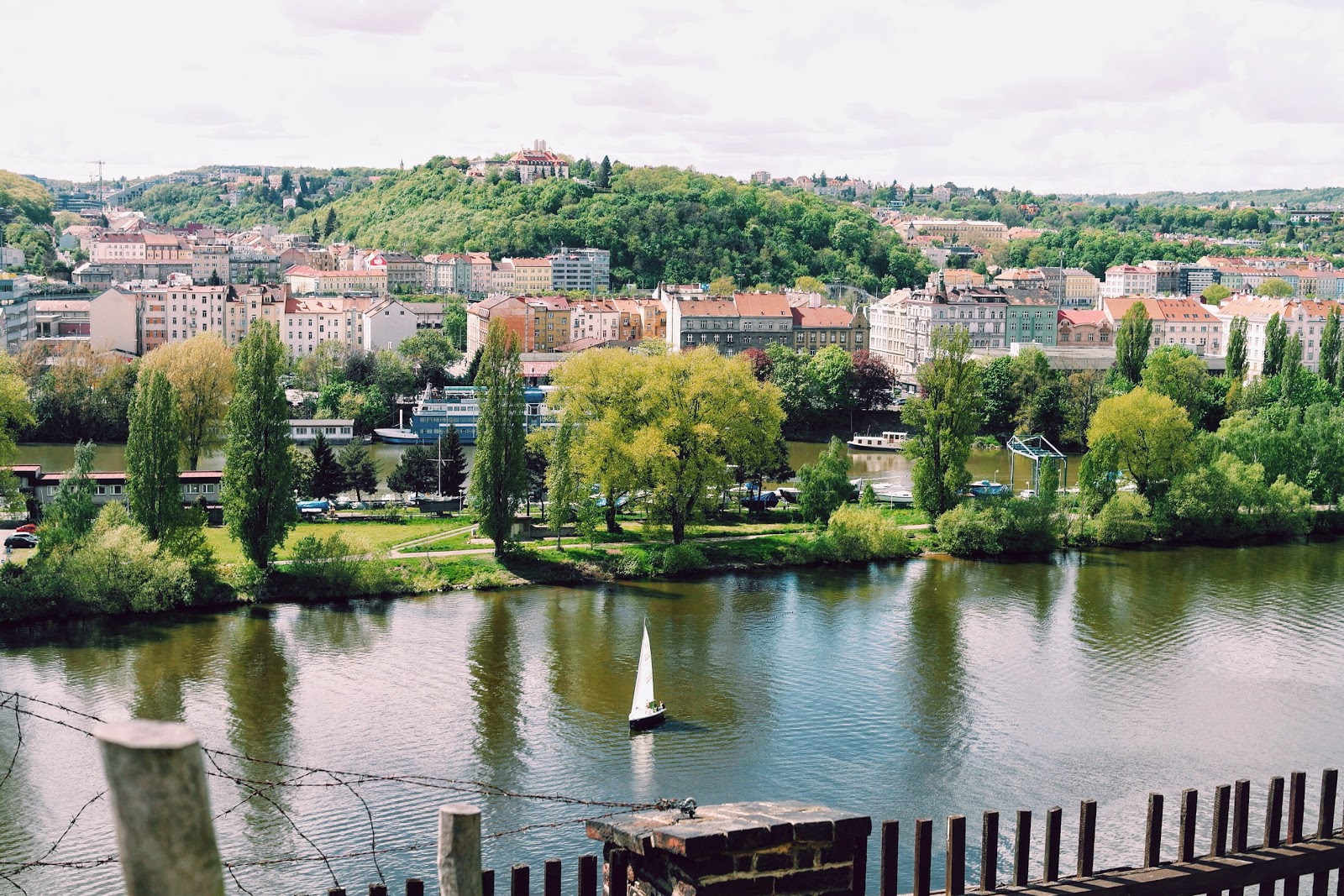 Hello everyone! How is your week going so far? I've got a new outfit post for you, yay! It's from when I was in Prague a few weeks ago, visiting one of my most favorite places there - The Vyšehrad fort. This beautiful part of the Prague skyline is a great place to check out when you are in Prague and it's only a few metro stations from the centre. You get a perfect view of Prague Castle and historical Prague from the walls of Vyšehrad. You can just come to hang out, relax, read a book between the blooming trees (we lucked out with timing of the year), have a lunch or dinner in the restaurants near by, visit an old cemetery where some of the most influential people are burried (famous Czech writers, musicians etc.).